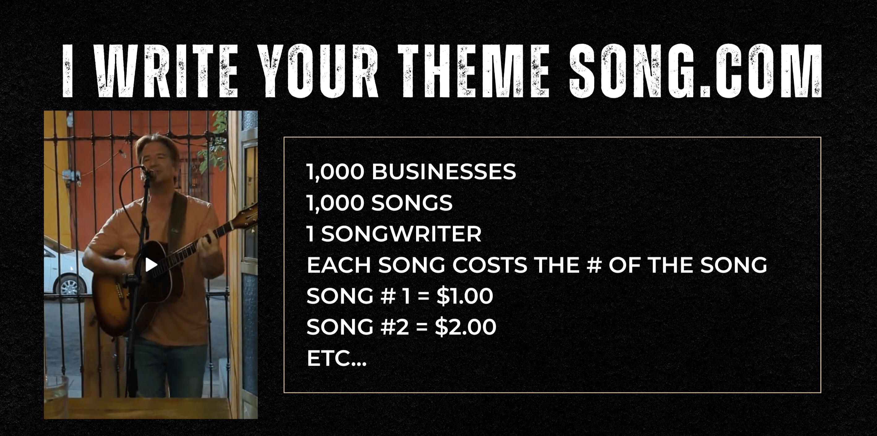 I’m a Berklee College of Music trained songwriter whose music has been featured in TV shows, commercials, and films. I recently launched a creative experiment to see what would happen if I turned 1,000 real businesses into songs.Each participating business receives a short custom theme song written about their business along with a promotional video built around the song. The business receives the audio and video files along with a commercial-use license so they can share and promote the content anywhere they like.The project is being documented publicly as the songs are created. Each new theme song and video will be shared on my YouTube, LinkedIn, and Facebook pages, while the project tracks the journey of turning one thousand businesses into music.The earlier a business joins the project, the cheaper their song will be.